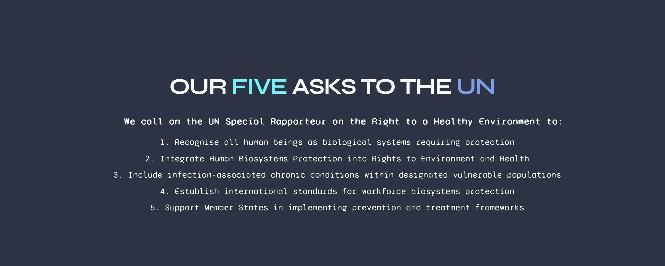 This is why we are asking the UN to recognise humans as biosystems that also need protection (includes prevention, treatment, support and investment).